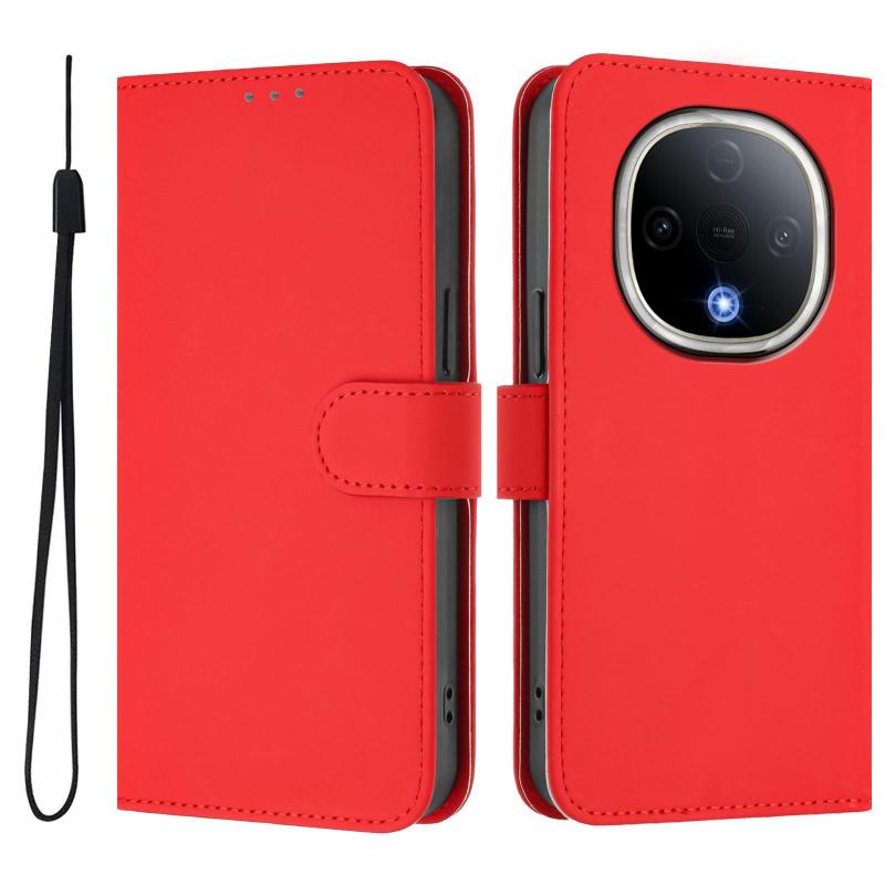 For vivo Y300 Skin Feel Solid Color Leather Phone Case with Lanyard(Red)