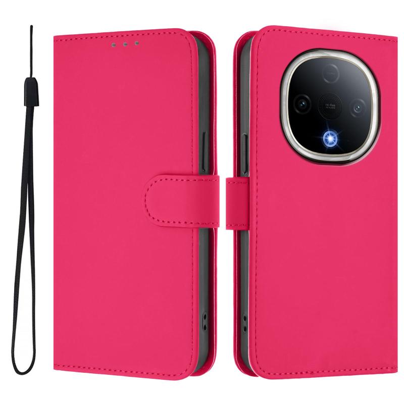 For vivo Y300 Skin Feel Solid Color Leather Phone Case with Lanyard(Rose Red)