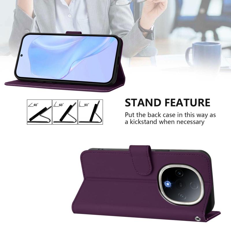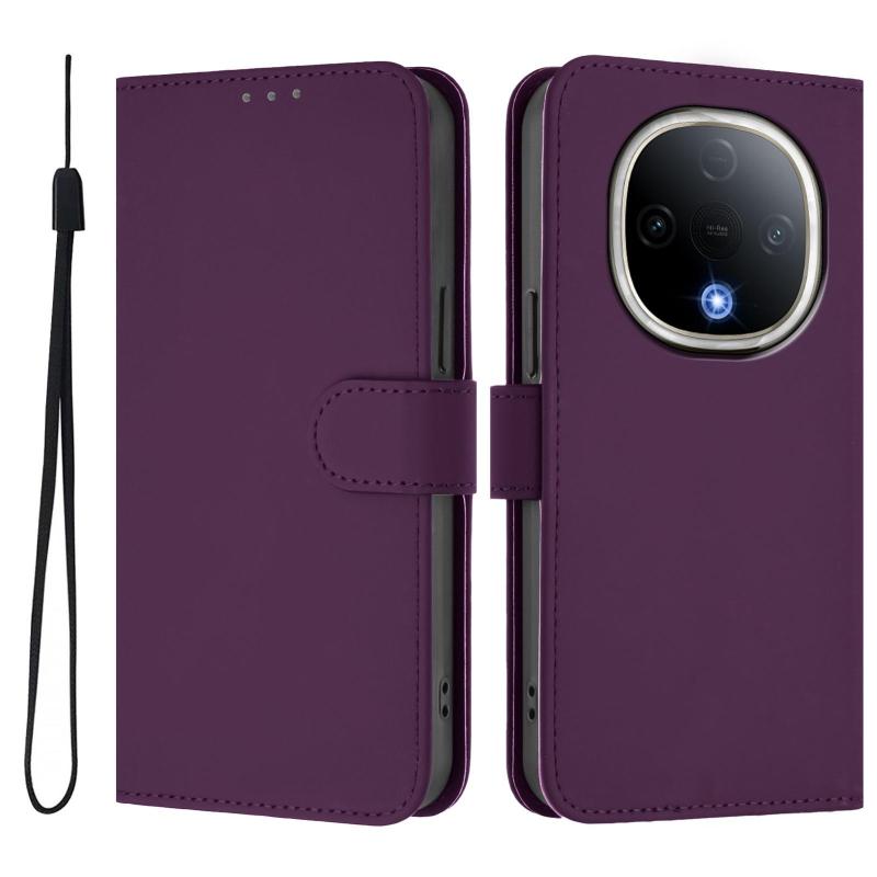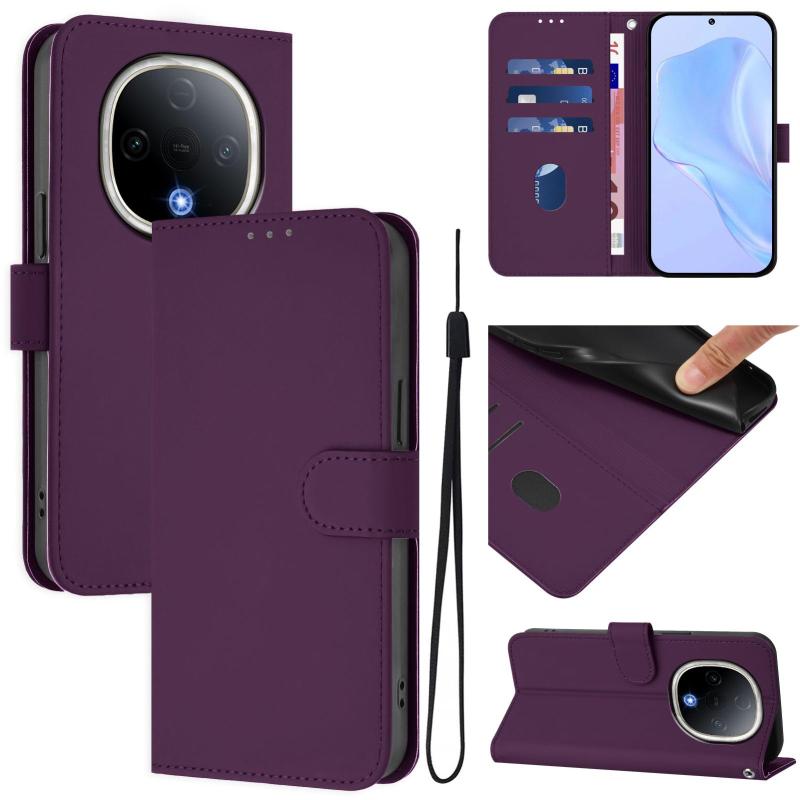 Θήκη τηλεφώνου για vivo Y300 με αίσθηση δέρματος, μονόχρωμη, με κορδόνι (Μωβ)