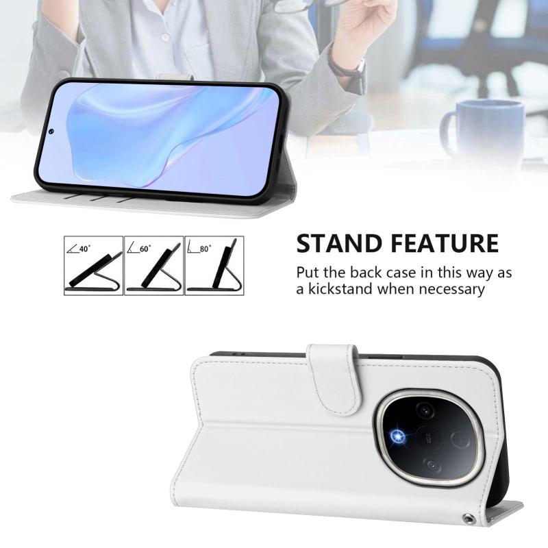 Θήκη τηλεφώνου για vivo Y300 με αίσθηση δέρματος, μονόχρωμη, από δέρμα με κορδόνι (Καφέ)