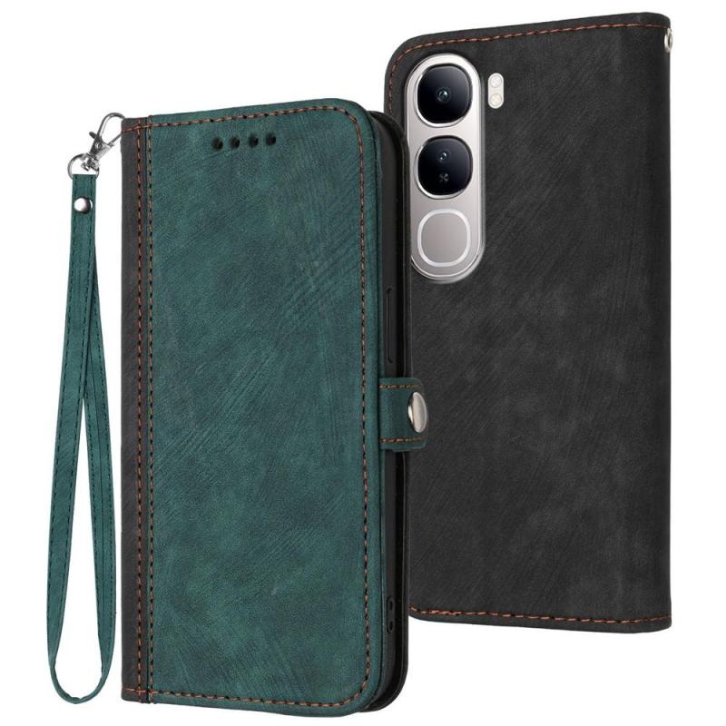 For vivo Y300 / vivo V40 Lite 4G / 5G IDN Side Buckle Double Fold Hand Strap Leather Phone Case(Dark Green)
