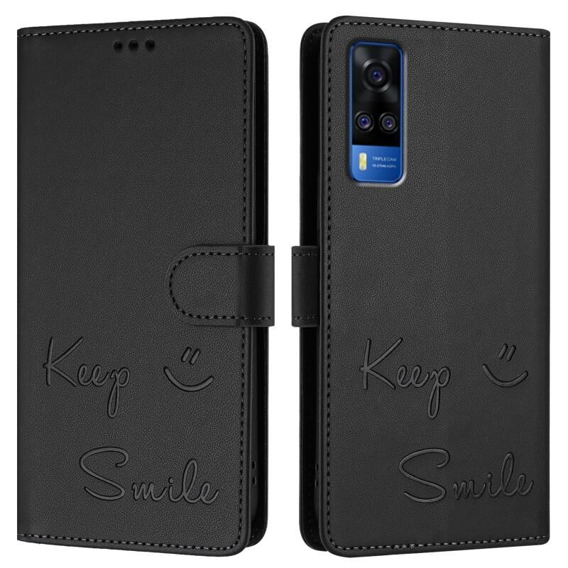 Για vivo Y31 4G 2021 Ινδία χαμόγελο ανάγλυφο RFID δερμάτινη θήκη τηλεφώνου (Μαύρο)