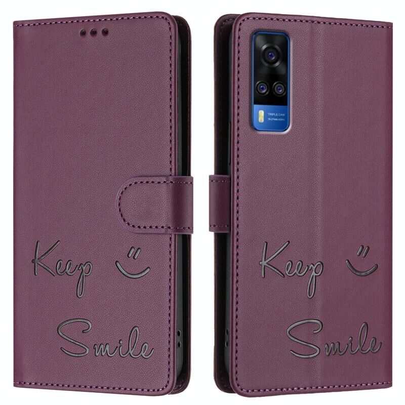 Για vivo Y31 4G 2021 Ινδία χαμόγελο ανάγλυφο RFID δερμάτινη θήκη τηλεφώνου (Violet)