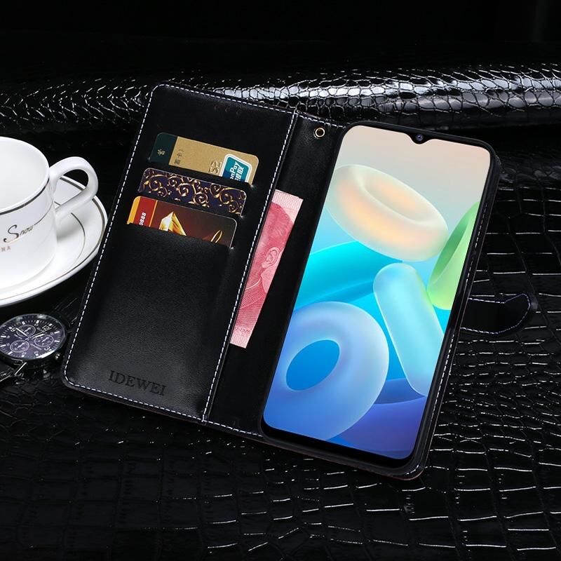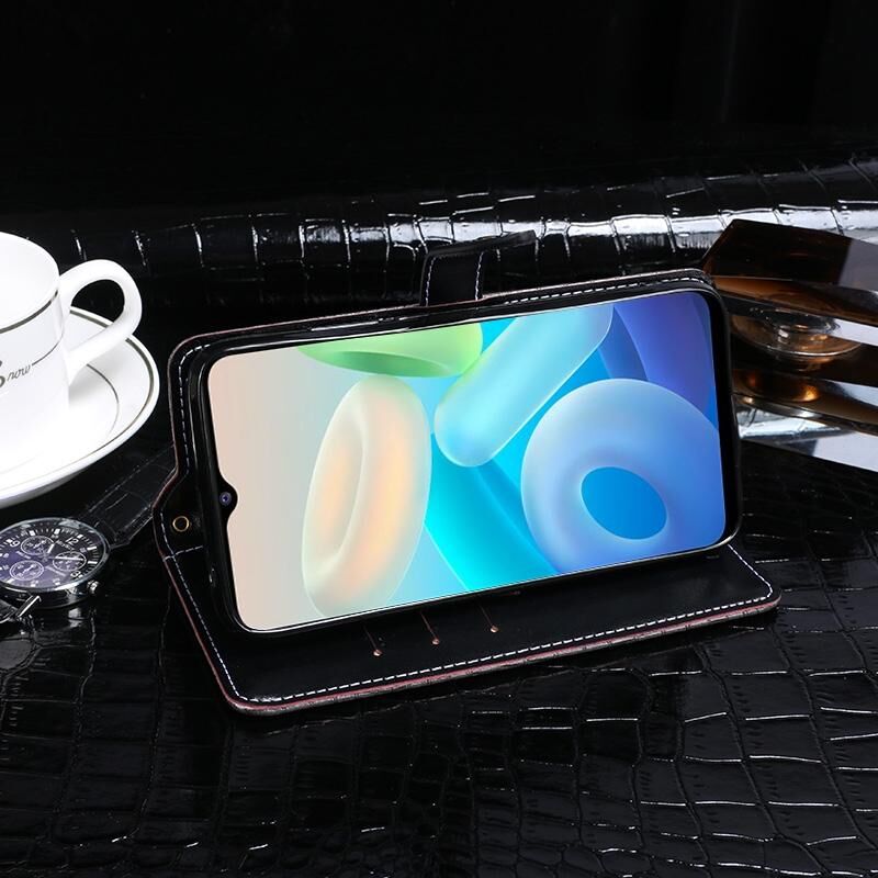 Θήκη τηλεφώνου δερμάτινη οριζόντιας αναδίπλωσης με υφή κροκόδειλου για Vivo Y32 idewei (Σκούρο Μπλε) (idewei)