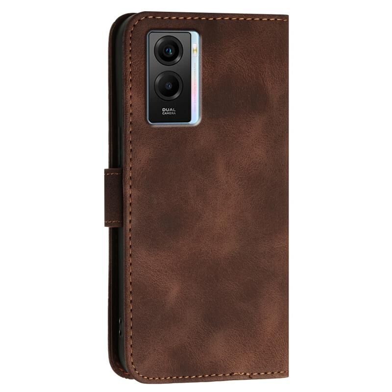 Θήκη τηλεφώνου δερμάτινη με ανάγλυφο σχέδιο πλέγματος πεταλούδας για vivo Y33e 5G με κορδόνι (Καφέ)