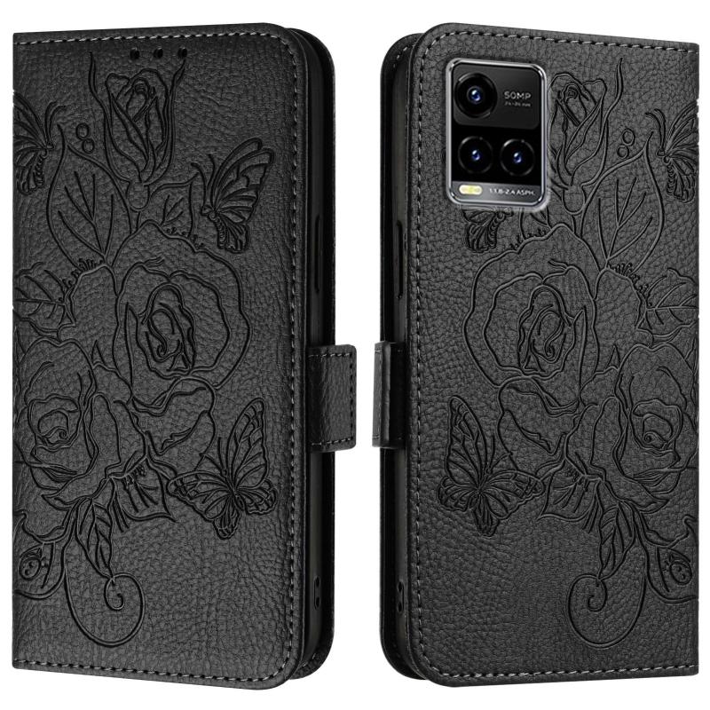 Θήκη τηλεφώνου από δέρμα με ανάγλυφο σχέδιο τριαντάφυλλου και προστασία RFID κατά της κλοπής για vivo Y33s 4G Global / Y21 / Y21s / Y21t (Πράσινη)