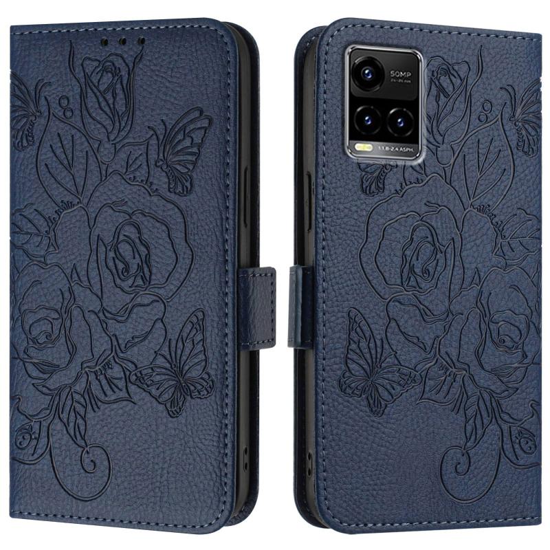 Θήκη τηλεφώνου από δέρμα με ανάγλυφο σχέδιο τριαντάφυλλου και προστασία RFID κατά της κλοπής για vivo Y33s 4G Global / Y21 / Y21s / Y21t (Πράσινη)