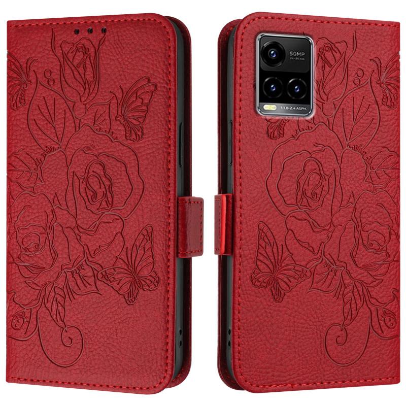 For vivo Y33s 4G Global / Y21 / Y21s / Y21t Embossed Rose RFID Anti-theft Leather Phone Case(Red)