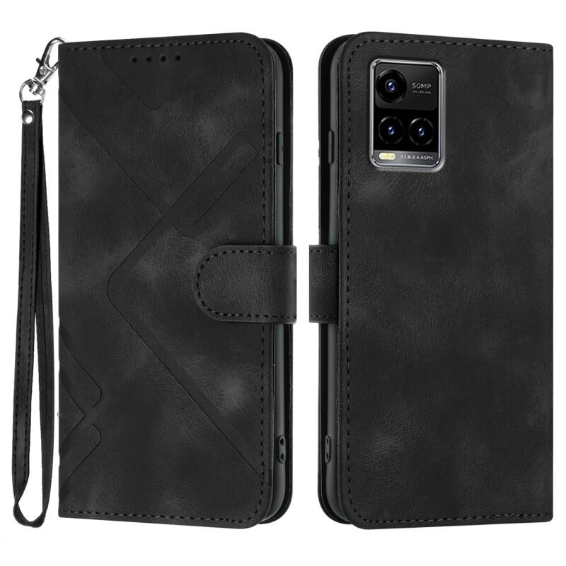 For vivo Y33s 4G Global/Y21/Y21s/Y21t Line Pattern Skin Feel Leather Phone Case(Black)