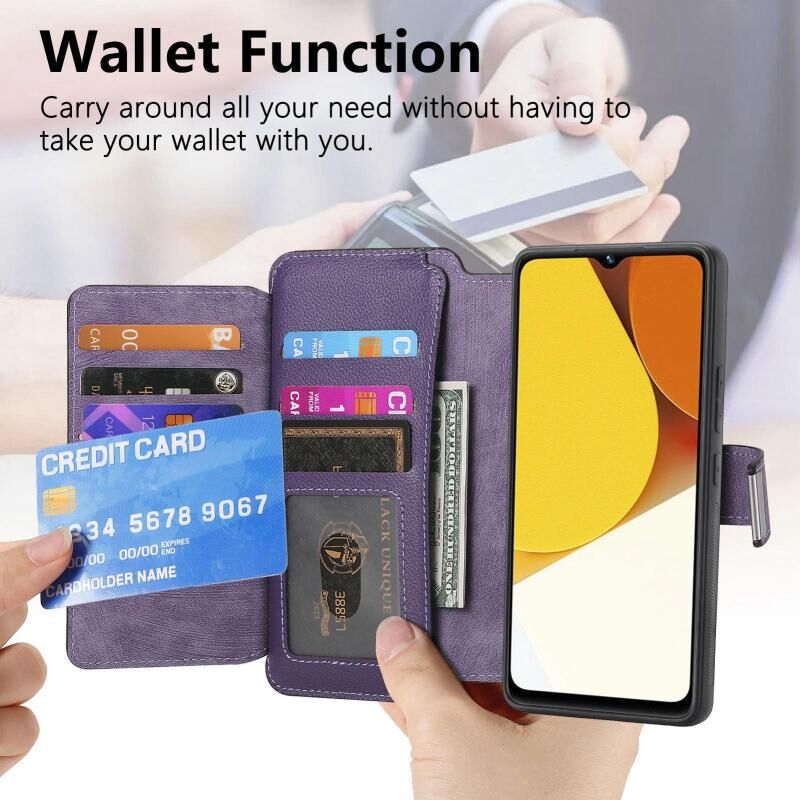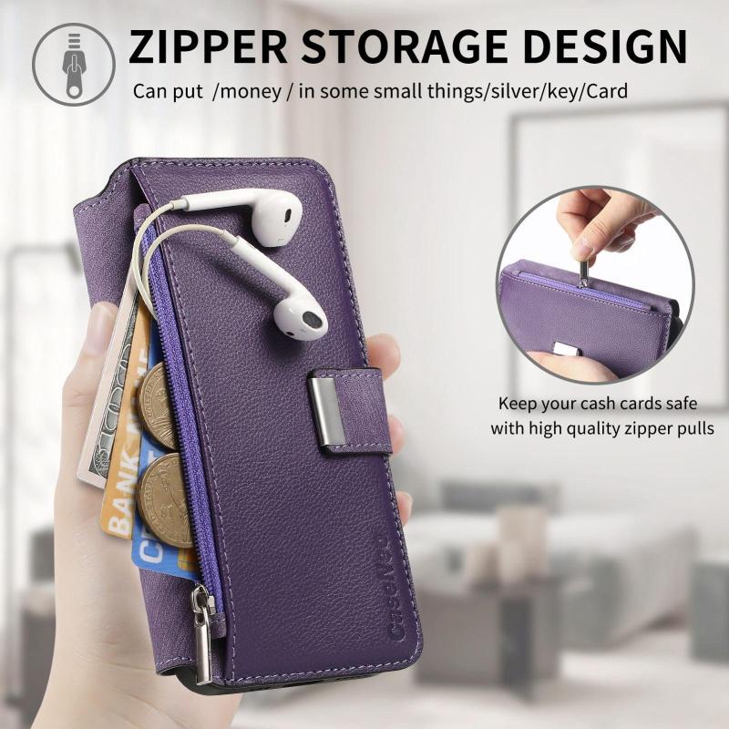 2. Λειτουργία πορτοφολιού με φερμουάρ: Η δερμάτινη θήκη είναι εξοπλισμένη με πορτοφόλι με φερμουάρ και υποδοχές για κάρτες για την τοποθέτηση καρτών και μικρού ποσού μετρητών.