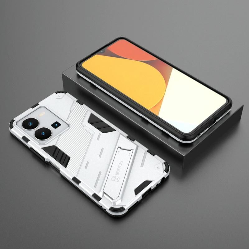 Θήκη κινητού τηλεφώνου για vivo Y35 4G Global από PC + TPU, ανθεκτική στις κρούσεις με αόρατο στήριγμα (Μαύρο)