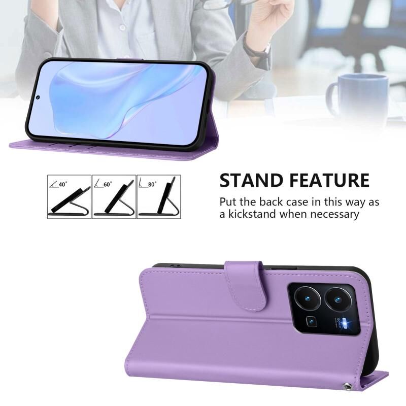 Θήκη τηλεφώνου από δέρμα με συμπαγή χρώματα και λουρί για vivo Y35 4G Global / Y22S 4G Global (Καφέ)