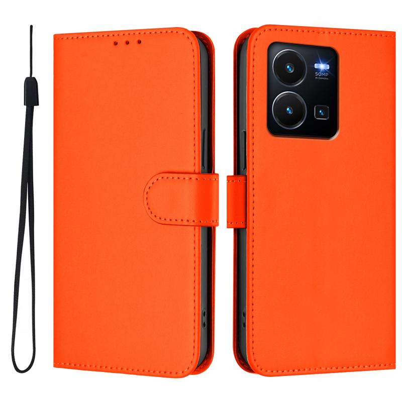 Θήκη τηλεφώνου από δέρμα με συμπαγή χρώματα και λουρί για vivo Y35 4G Global / Y22S 4G Global (Καφέ)
