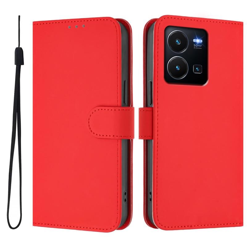 Θήκη τηλεφώνου από δέρμα με συμπαγή χρώματα και λουρί για vivo Y35 4G Global / Y22S 4G Global (Καφέ)