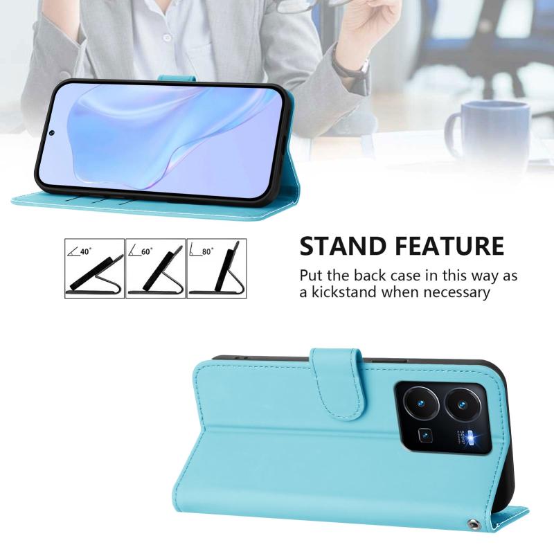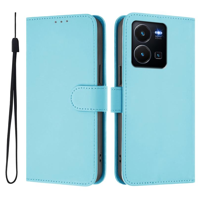 Θήκη τηλεφώνου από δέρμα με συμπαγή χρώματα και λουρί για vivo Y35 4G Global / Y22S 4G Global (Καφέ)