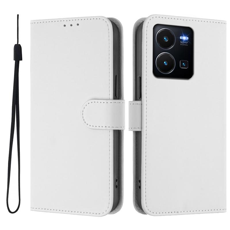Θήκη τηλεφώνου από δέρμα με συμπαγή χρώματα και λουρί για vivo Y35 4G Global / Y22S 4G Global (Καφέ)