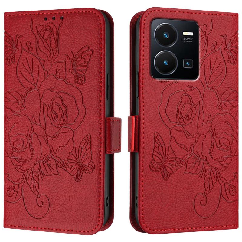 Θήκη τηλεφώνου από δέρμα με ανάγλυφο σχέδιο τριαντάφυλλου και προστασία RFID κατά της κλοπής για vivo Y35 4G / Y22 4G / Y22s 4G (Πράσινο)