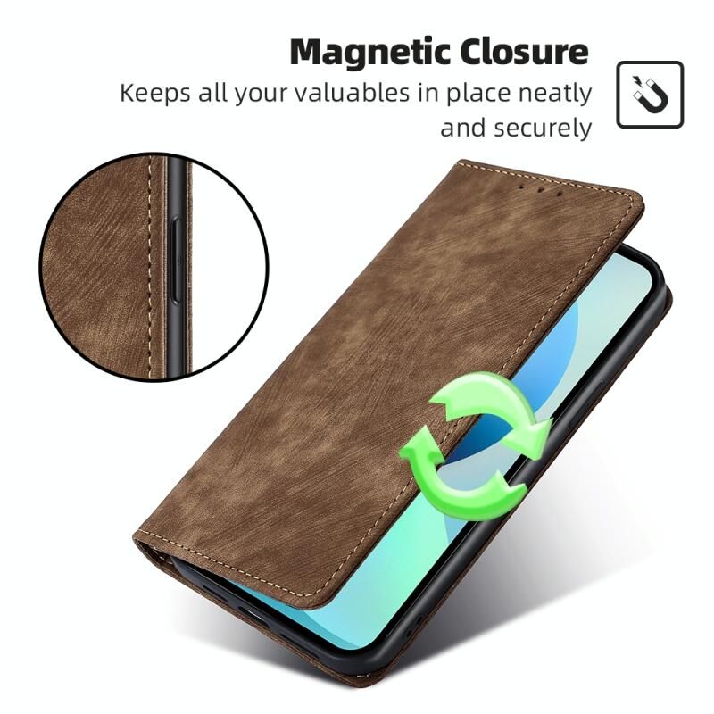 Για vivo Y35 4G / Y22 / Y22s RFID Anti-theft Brush Μαγνητική θήκη τηλεφώνου από δέρμα (Καφέ)