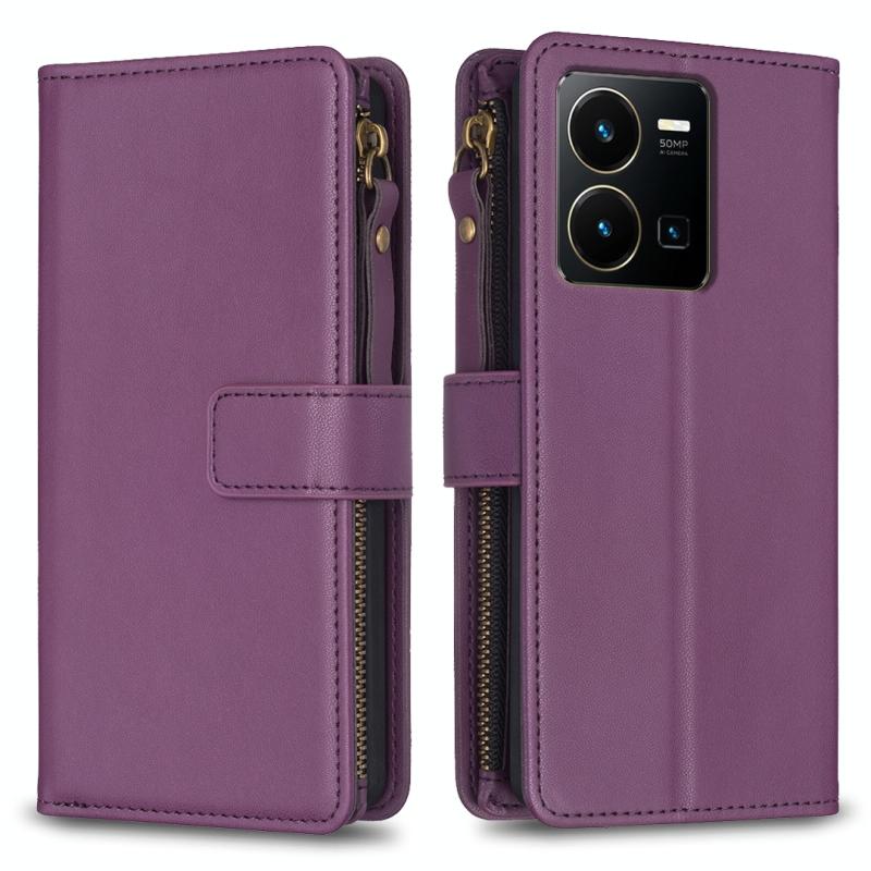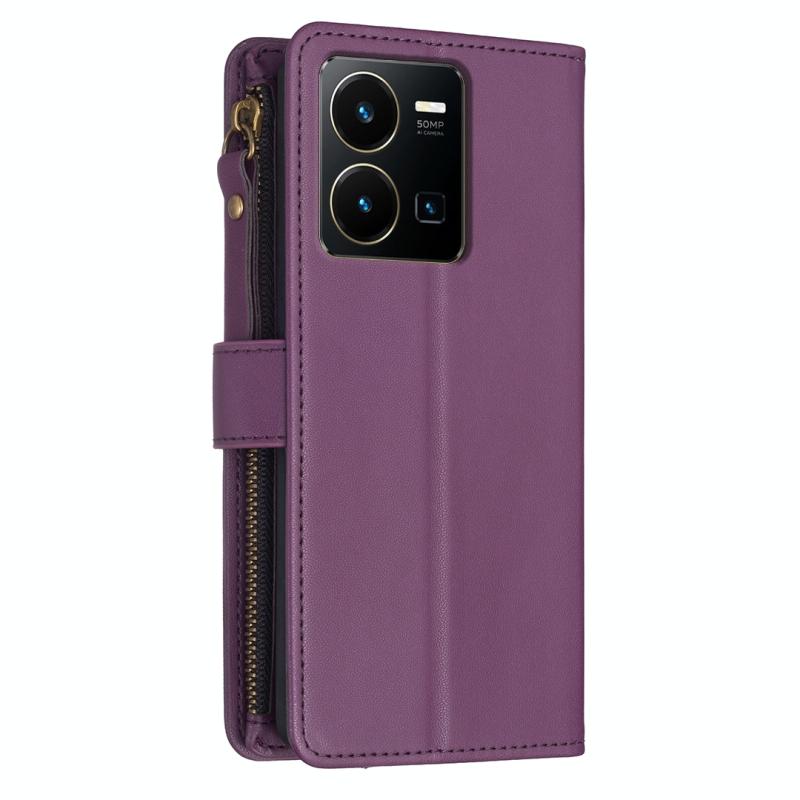 Για vivo Y35 4G / Y22s Θήκη τηλεφώνου με δέρμα τύπου flip με φερμουάρ και 9 θέσεις για κάρτες (Σκούρο μωβ)