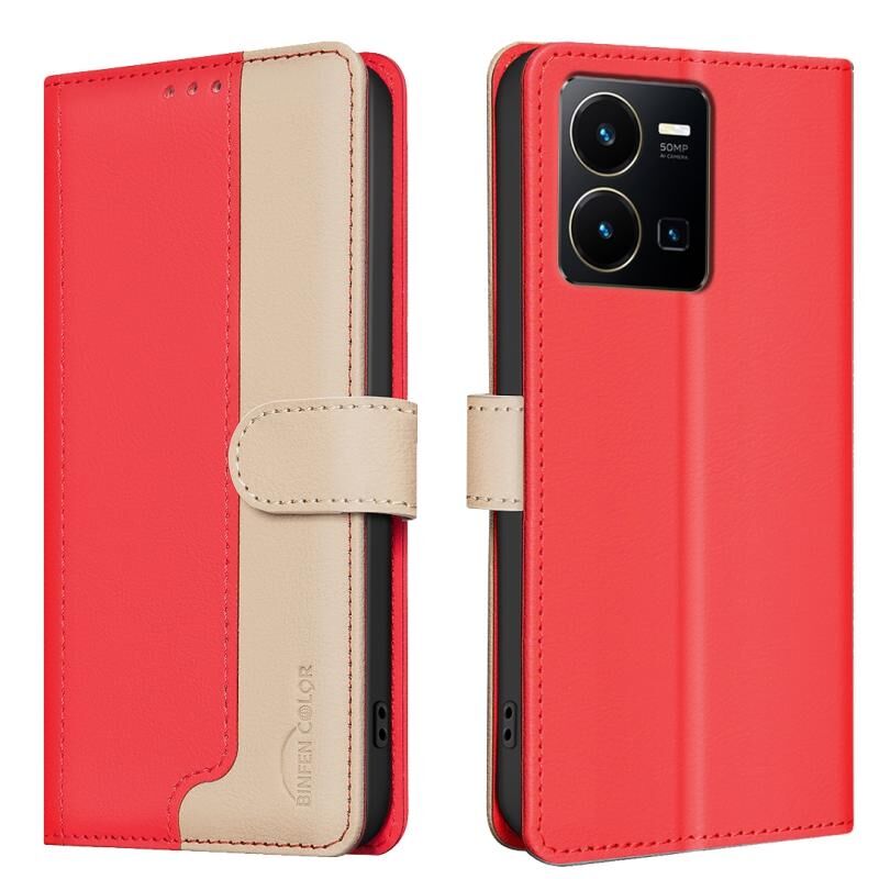Θήκη τηλεφώνου από δέρμα με μπλοκάρισμα RFID, αντικλεπτική, σε χρώμα που ταιριάζει με το vivo Y35 4G / Y22s (Κόκκινο)
