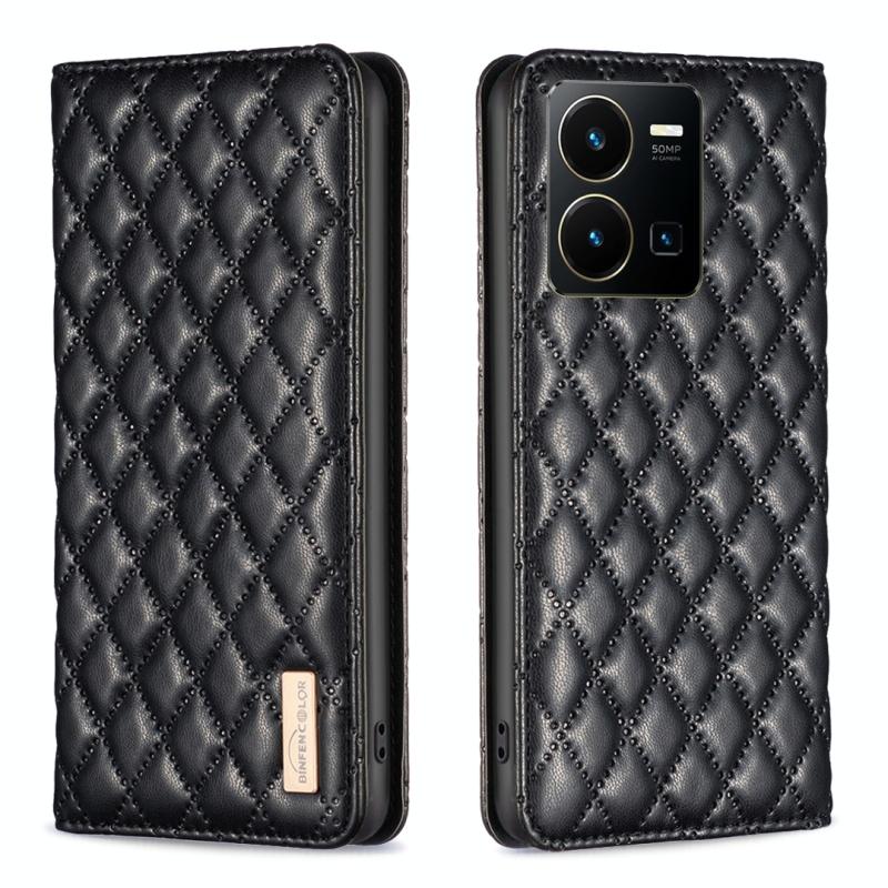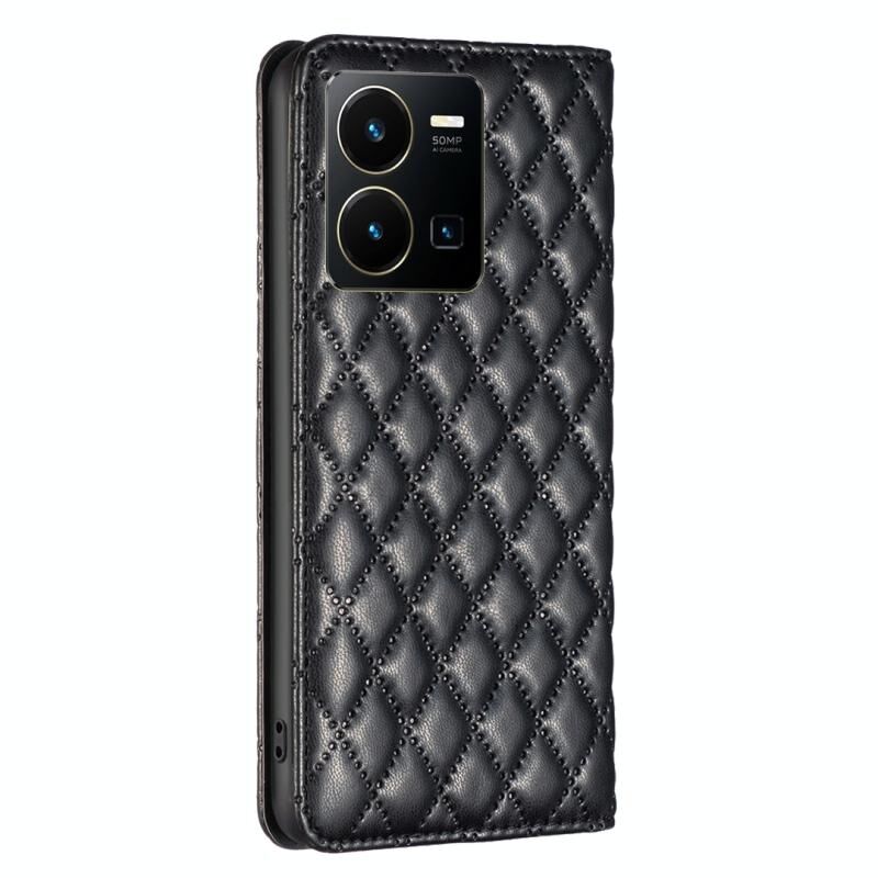 Θήκη τηλεφώνου με μαγνητικό δέρμα τύπου Diamond Lattice για vivo Y35 4G / Y22s (Μαύρο)