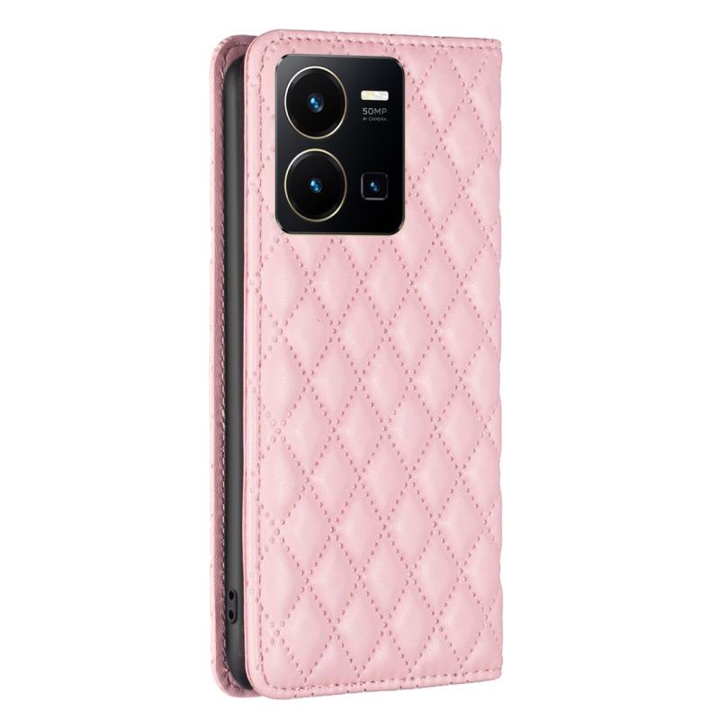 Θήκη τηλεφώνου με μαγνητικό δέρμα τύπου Diamond Lattice για vivo Y35 4G / Y22s (ρόζ)