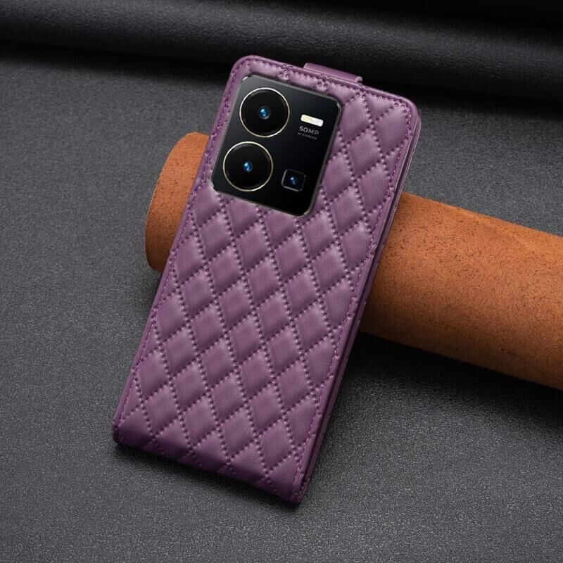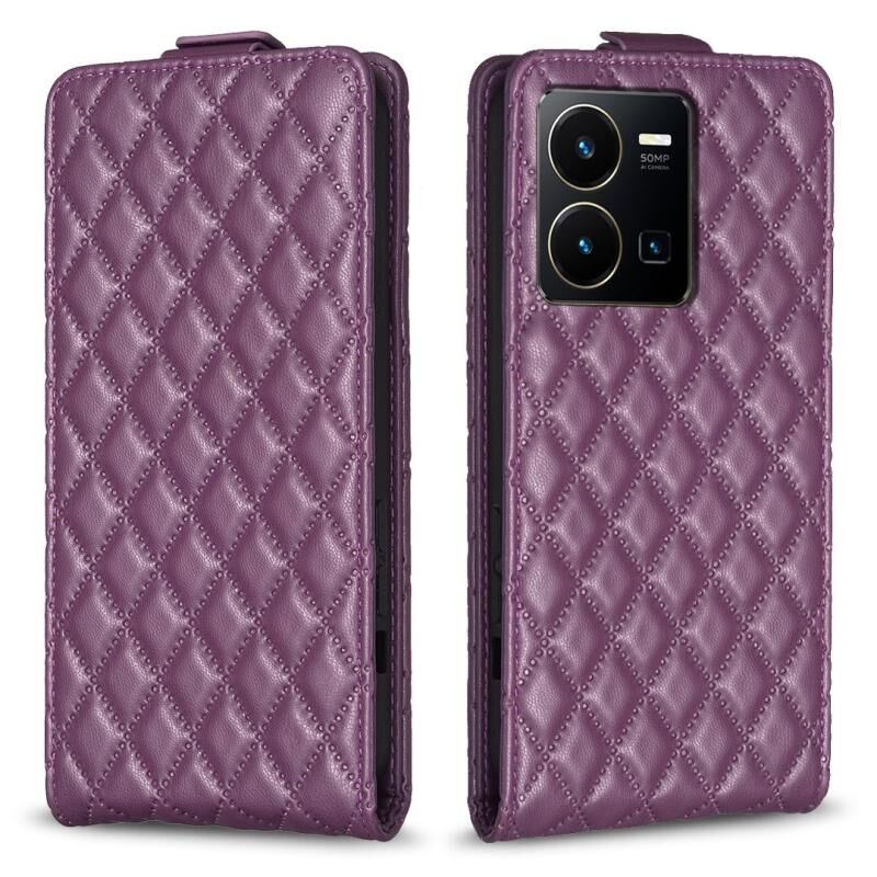 Για το vivo Y35 4G / Y22s Diamond Lattice Κάθετη Flip δερμάτινη θήκη τηλεφώνου (Σκούρο μωβ)