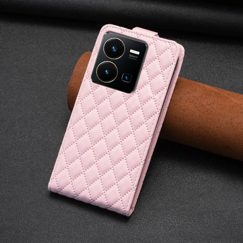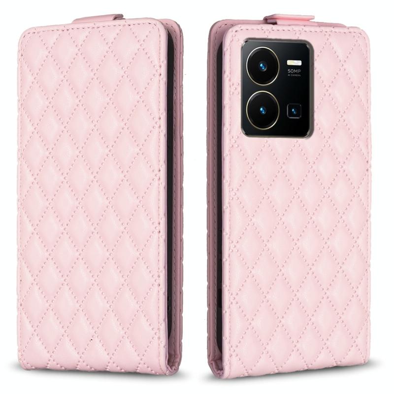 For vivo Y35 4G / Y22s Diamond Lattice Vertical Flip Leather Phone Case(Pink)