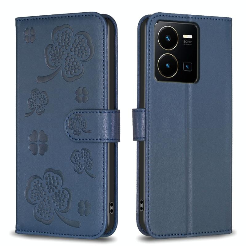 For vivo Y35 4G / Y22s Four-leaf Embossed Leather Phone Case(Blue)