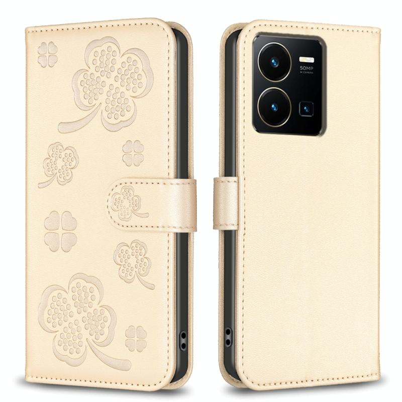 For vivo Y35 4G / Y22s Four-leaf Embossed Leather Phone Case(Gold)
