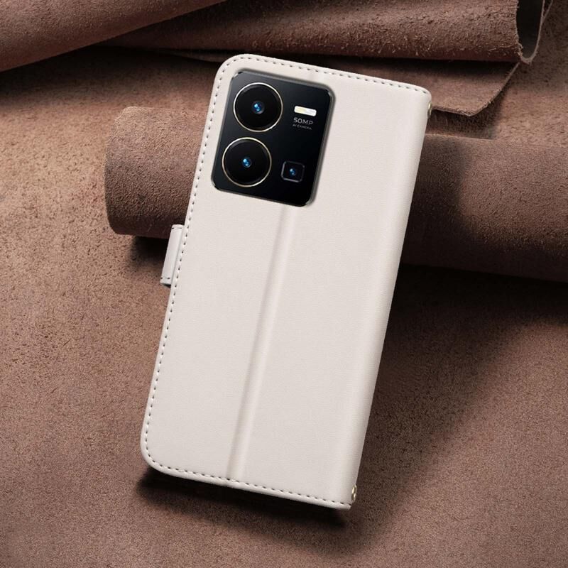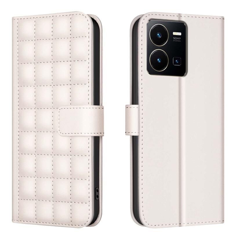 Θήκη τηλεφώνου από δέρμα με τετράγωνη υφή για vivo Y35 4G / Y22s (Μπεζ)