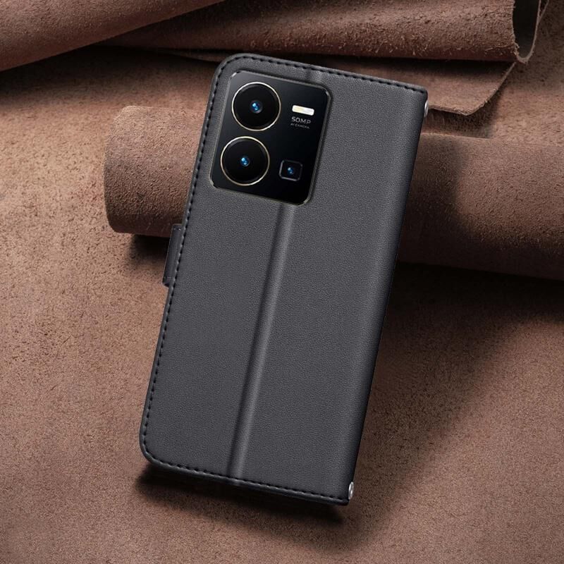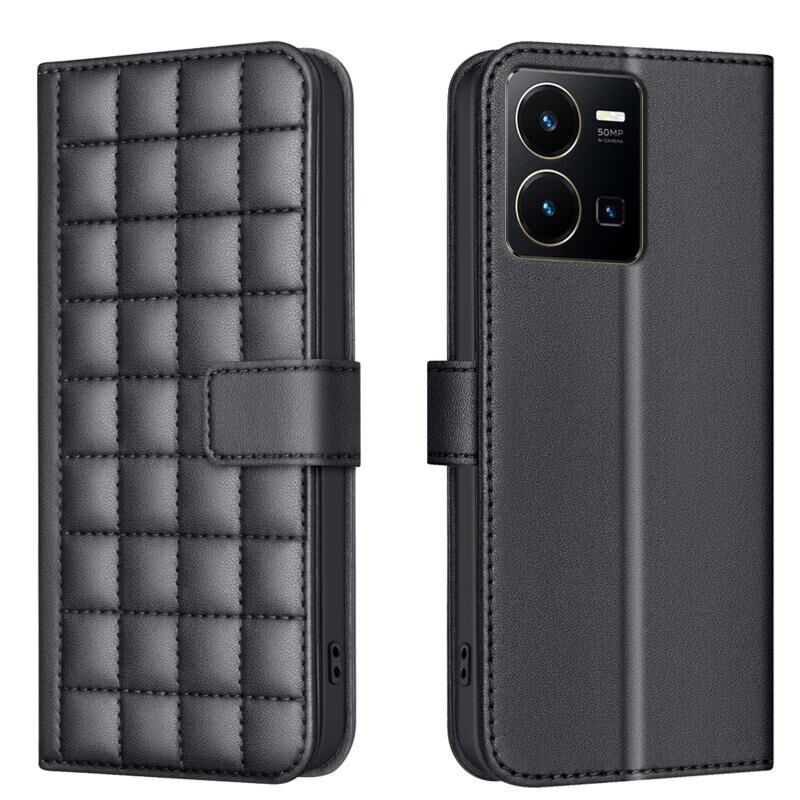 Θήκη τηλεφώνου από δέρμα με τετράγωνη υφή για vivo Y35 4G / Y22s (Μαύρο)