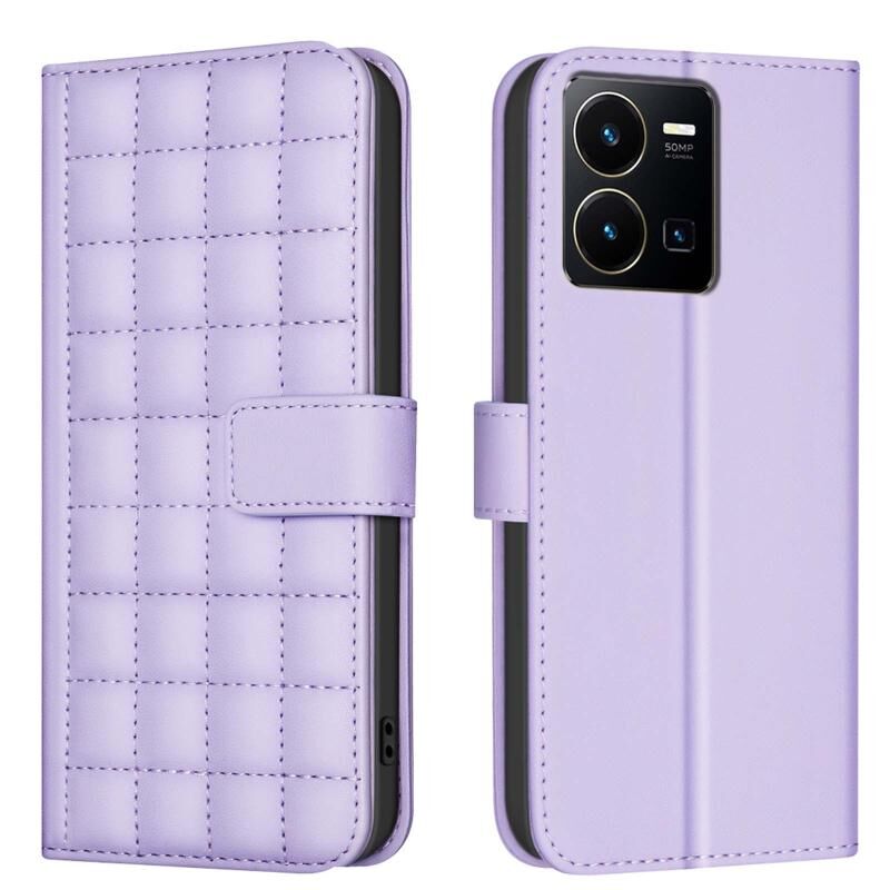 Θήκη τηλεφώνου από δέρμα με τετράγωνη υφή για vivo Y35 4G / Y22s (Μωβ)