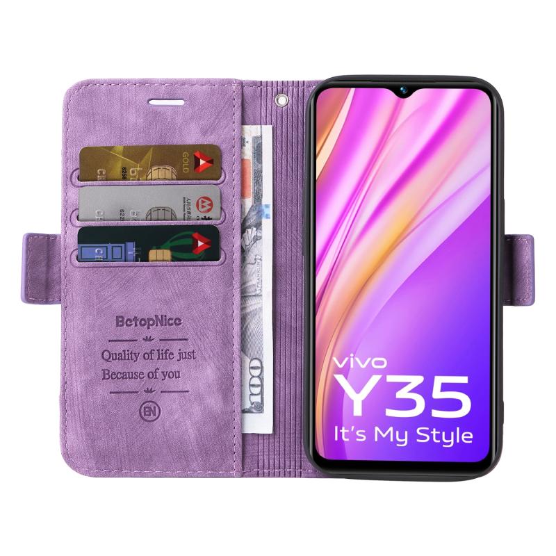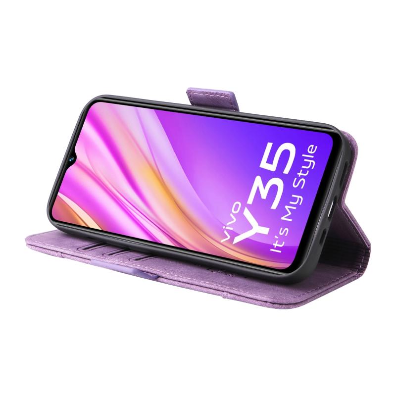 Θήκη τηλεφώνου από δέρμα με διπλή αγκράφα για vivo Y35 4G / Y22s / Y22 (Μωβ) (Μωβ)