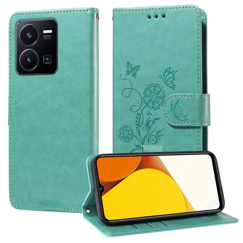 For vivo Y35 4G / Y22s / Y22 Embossed Butterfly Flowers Leather Phone Case(Green)