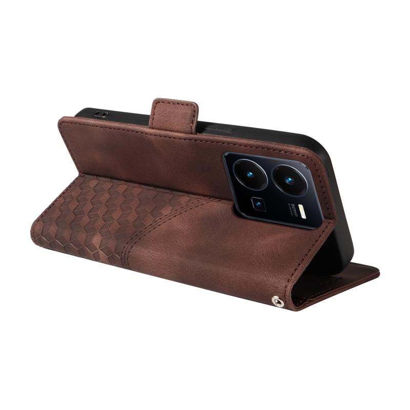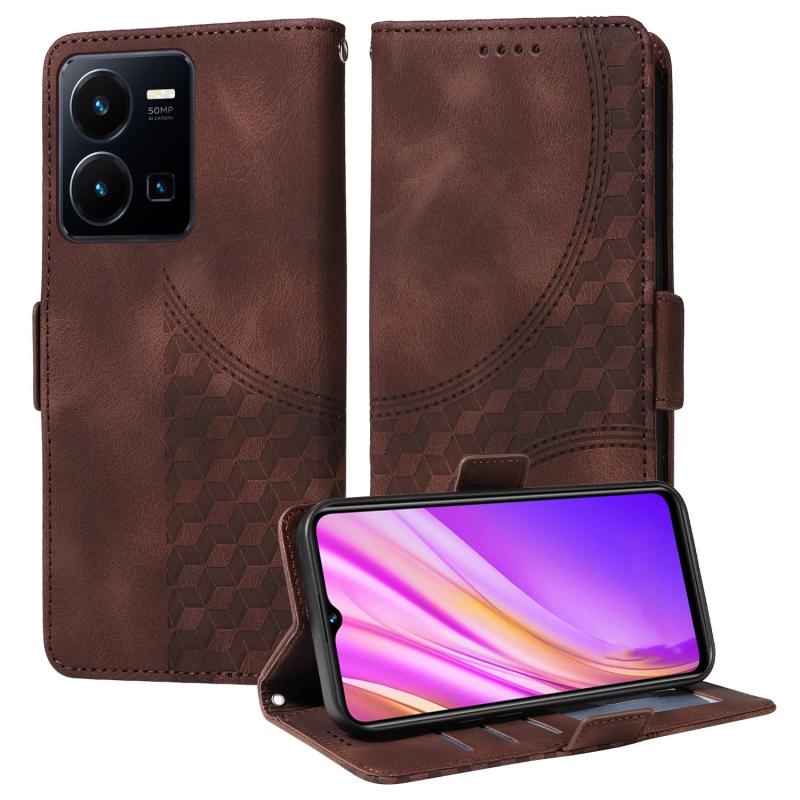 Θήκη τηλεφώνου από δέρμα με ανάγλυφο ρόμβο και αστρικό σχέδιο για vivo Y35 4G / Y22s / Y22 (Πράσινο)