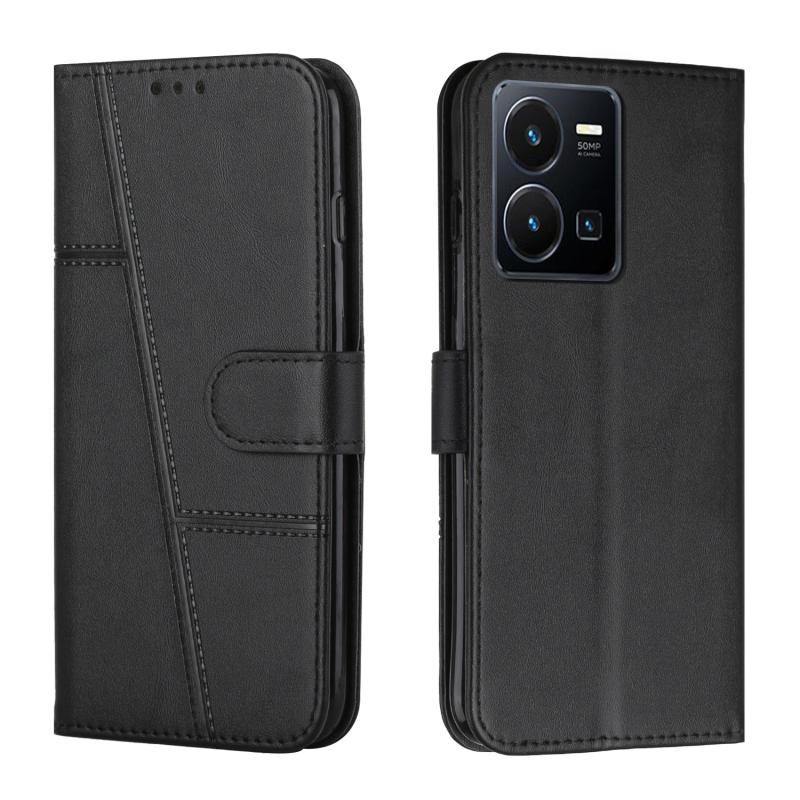 For vivo Y35 4G/Y22s/Y22 Stitching Calf Texture Buckle Leather Phone Case(Black)