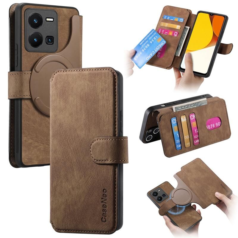 Θήκη για vivo Y35 5G CaseNeo MagSafe RFID Αντικλεπτική Ρετρό Δερμάτινη Θήκη Τηλεφώνου (Μαύρο) (CaseNeo)