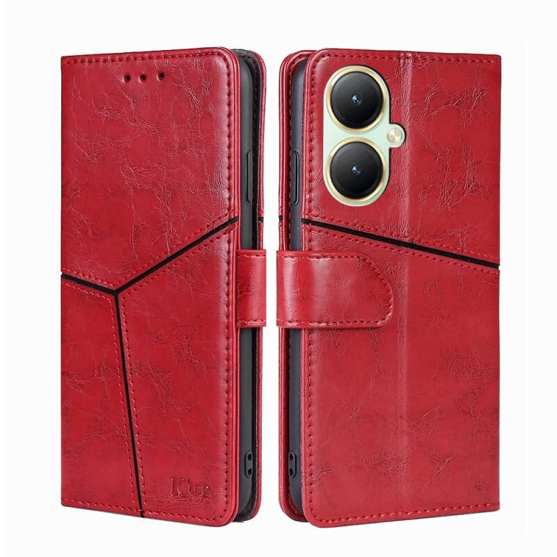 Για vivo Y35+ 5G γεωμετρική ραφή δερμάτινη θήκη τηλεφώνου (κόκκινο)