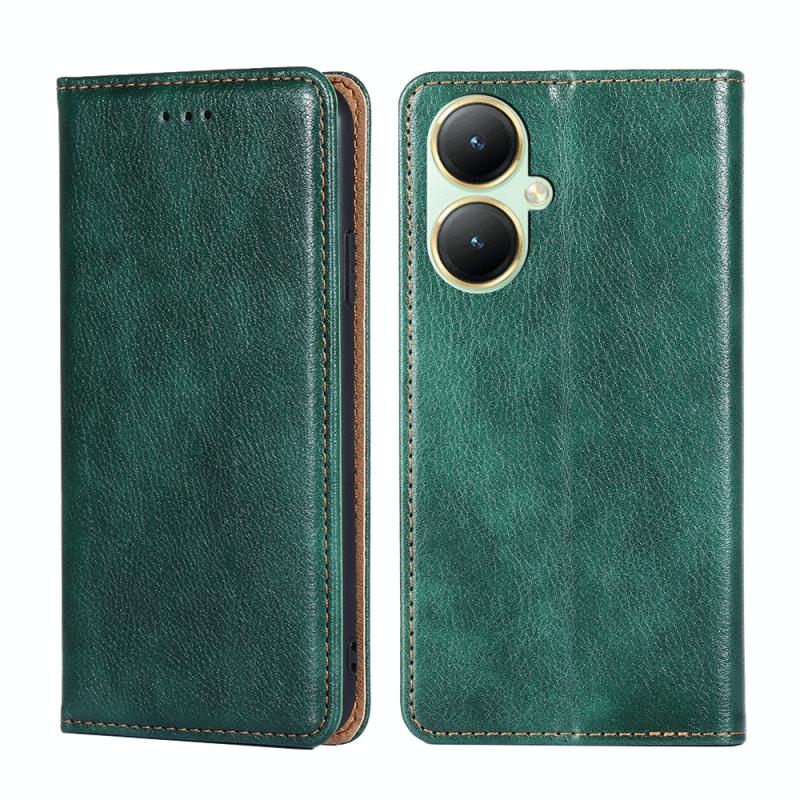 For vivo Y35+ 5G Gloss Oil Solid Color Magnetic Leather Phone Case(Green)