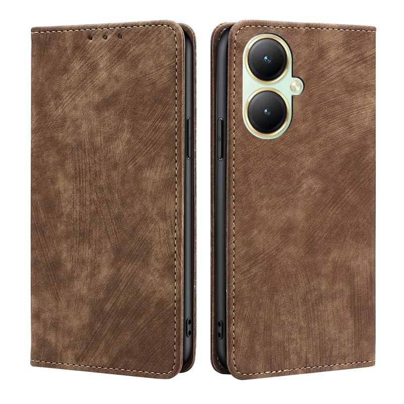 For vivo Y35+ 5G RFID Anti-theft Brush Magnetic Leather Phone Case(Brown)