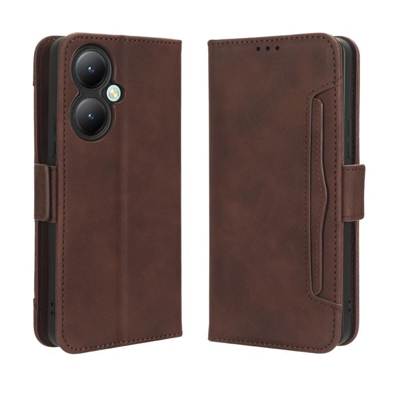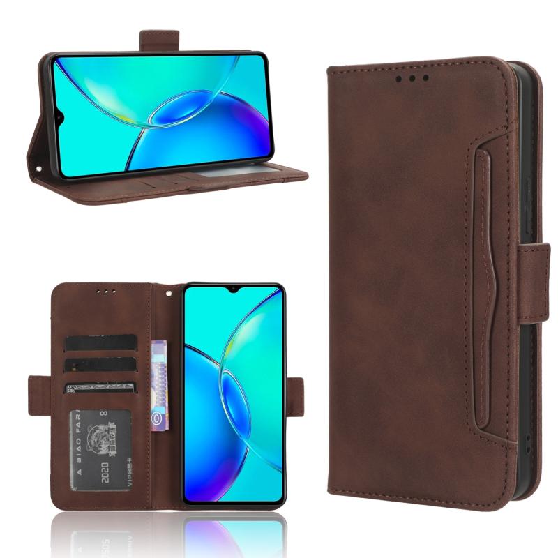 Θήκη τηλεφώνου από δέρμα για vivo Y35+ 5G με υφή μοσχαρίσιου δέρματος, θήκες καρτών (Καφέ)