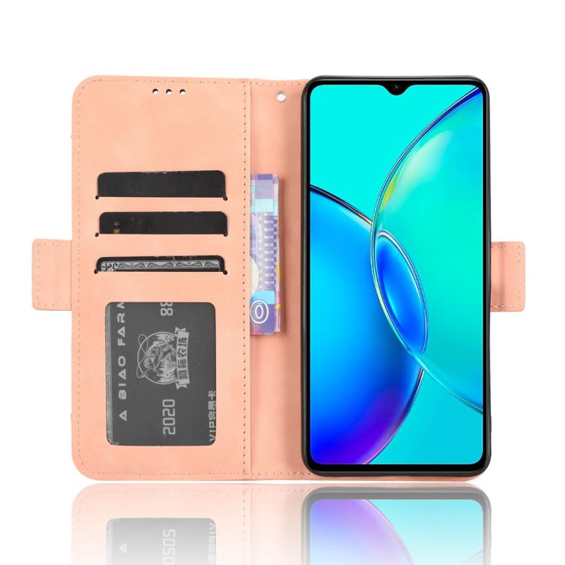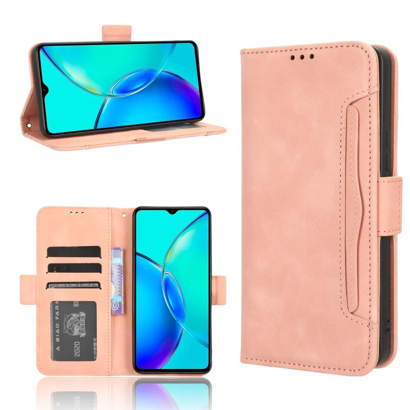 Θήκη τηλεφώνου από δέρμα για vivo Y35+ 5G με υφή μοσχαρίσιου δέρματος, θήκες καρτών (ρόζ)
