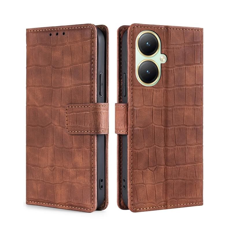 Θήκη τηλεφώνου από δέρμα με μαγνητικό κούμπωμα και υφή κροκόδειλου για vivo Y35+ 5G (Καφέ)