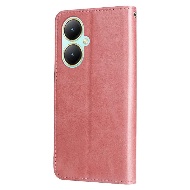 Για vivo Y35+ Μόδα μοσχάρι υφή φερμουάρ δερμάτινη θήκη τηλεφώνου (Rose Gold)
