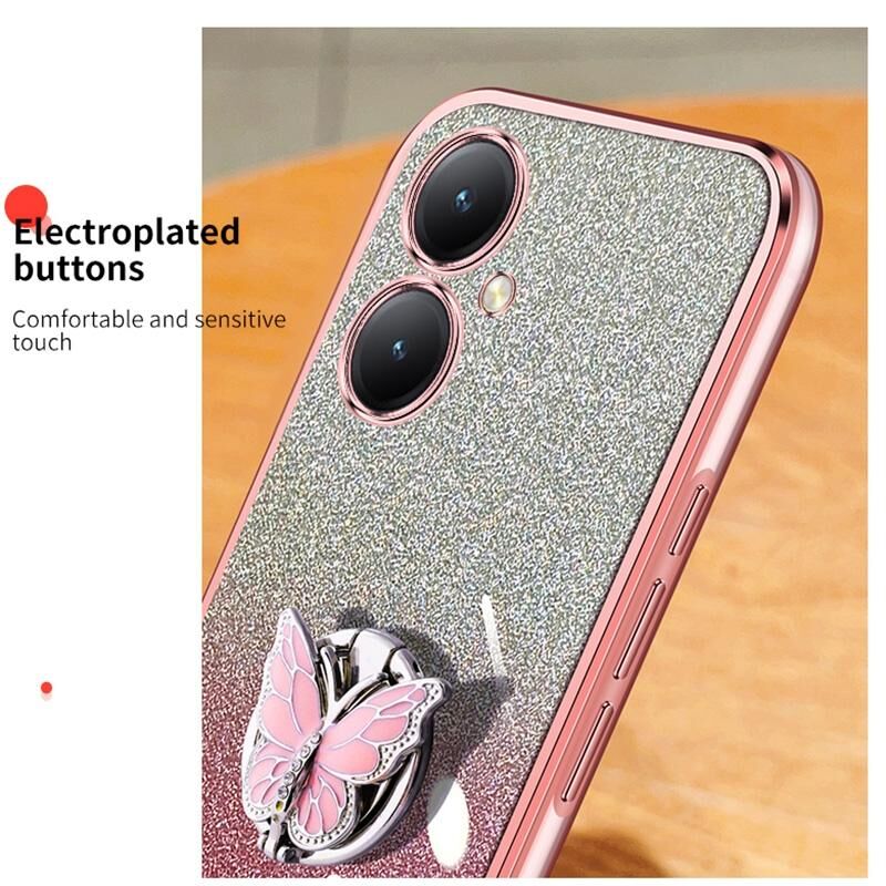 Για το vivo Y35 + Επιμεταλλωμένο διαβάθμιση Glitter πεταλούδα κάτοχος TPU τηλέφωνο υπόθεση (Sierra Blue)