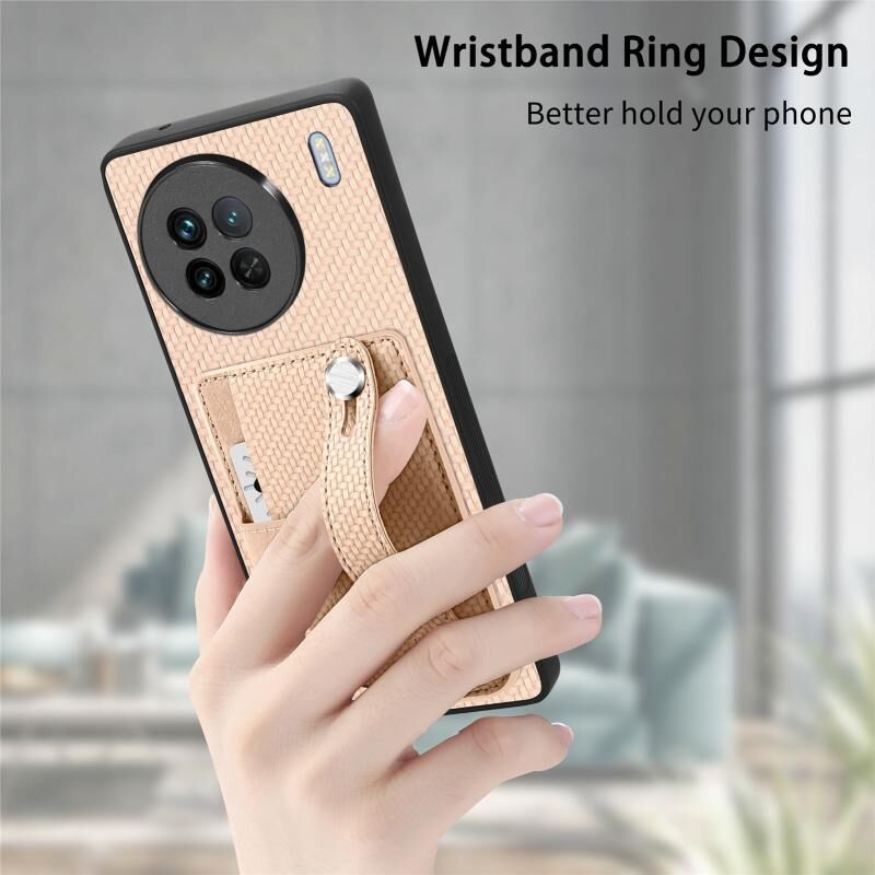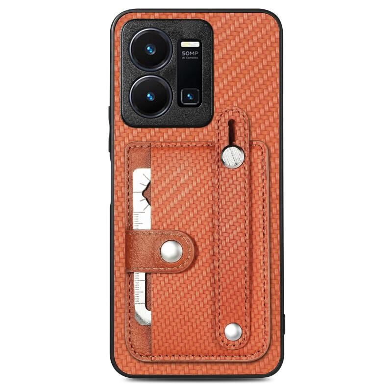 Για vivo Y35 Wristband Kickstand κάρτα πορτοφόλι πίσω κάλυμμα τηλεφώνου υπόθεση με εργαλείο μαχαίρι (καφέ)