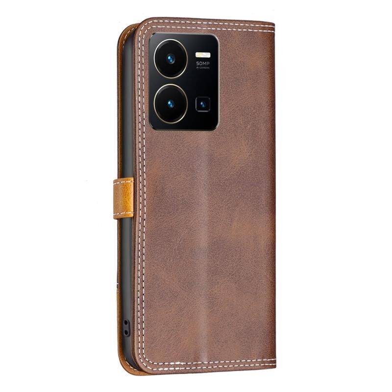 Θήκη τηλεφώνου από δέρμα με διπλή ραφή και αντιστοίχιση χρωμάτων για vivo Y35/Y22 (Μαύρο)