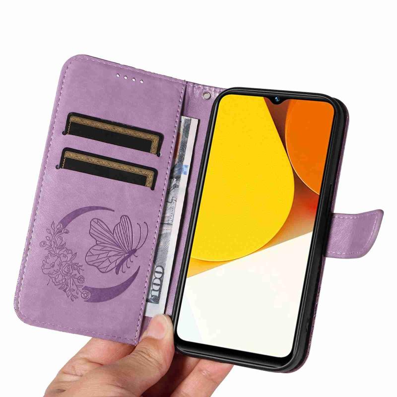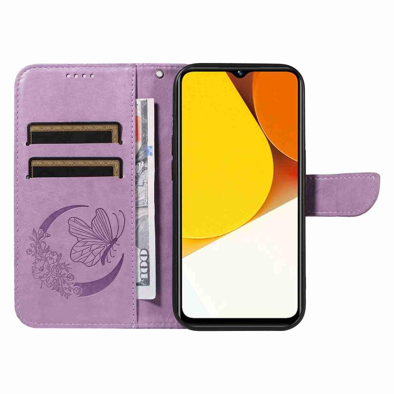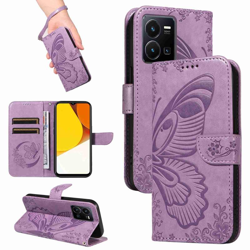 For vivo Y35 / Y22s / Y22 Swallowtail Butterfly Embossed Leather Phone Case(Purple)