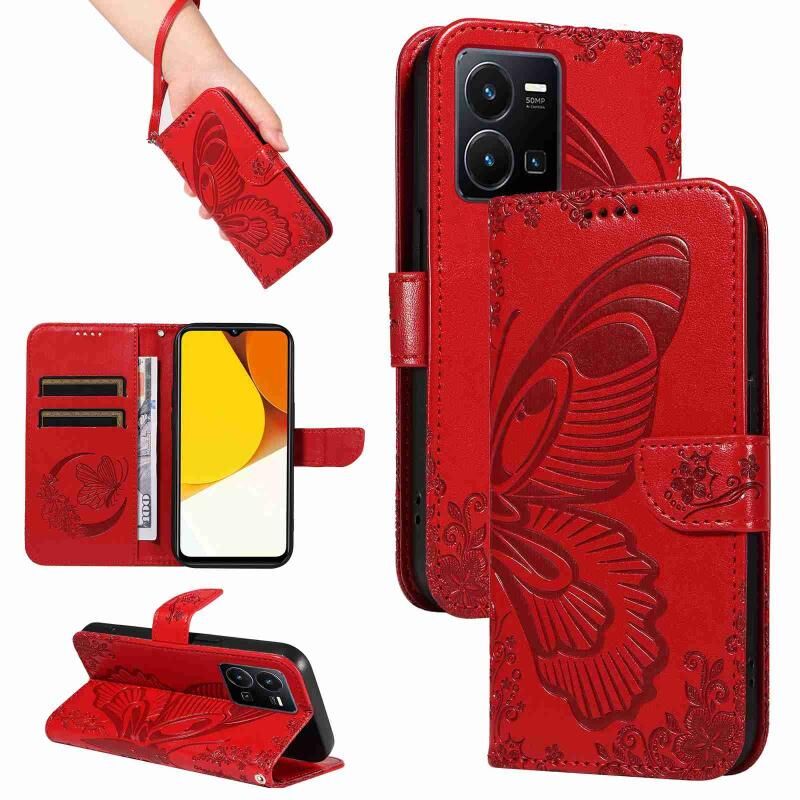 Θήκη τηλεφώνου από δέρμα με ανάγλυφο σχέδιο πεταλούδας για vivo Y35 / Y22s / Y22 (Μπλε)